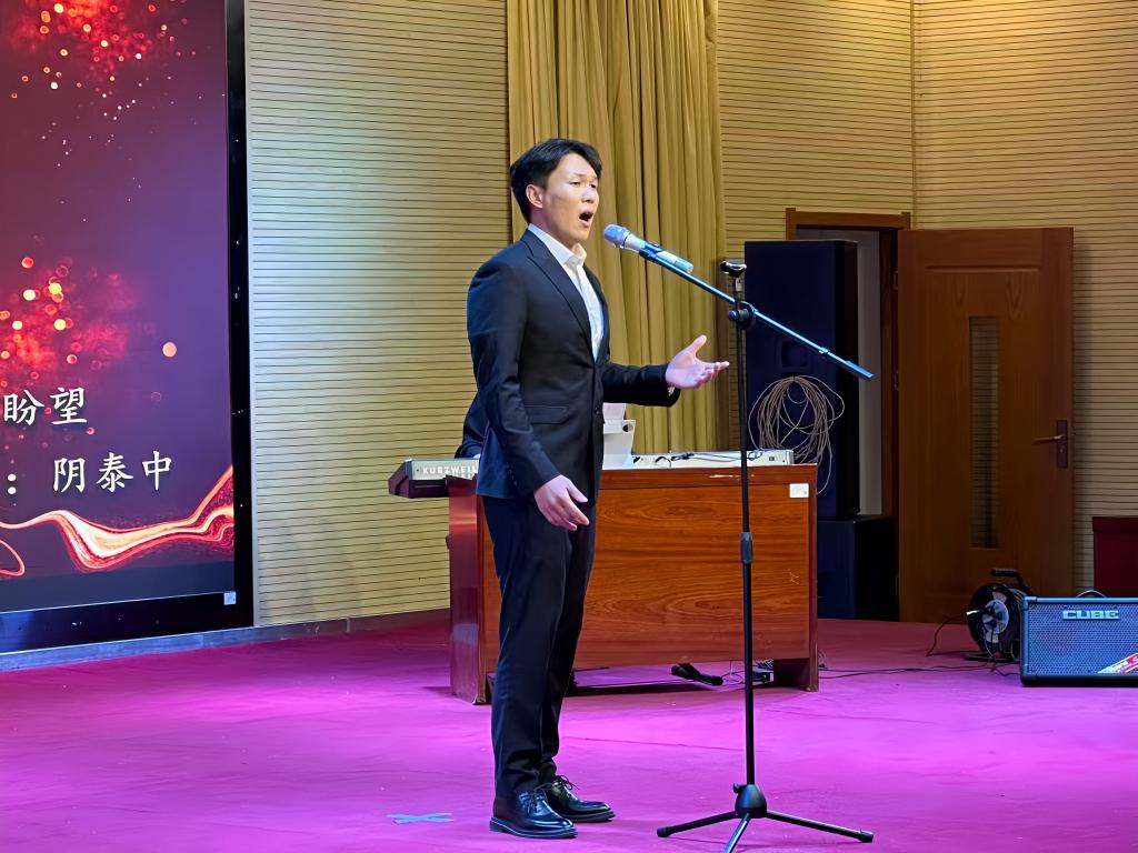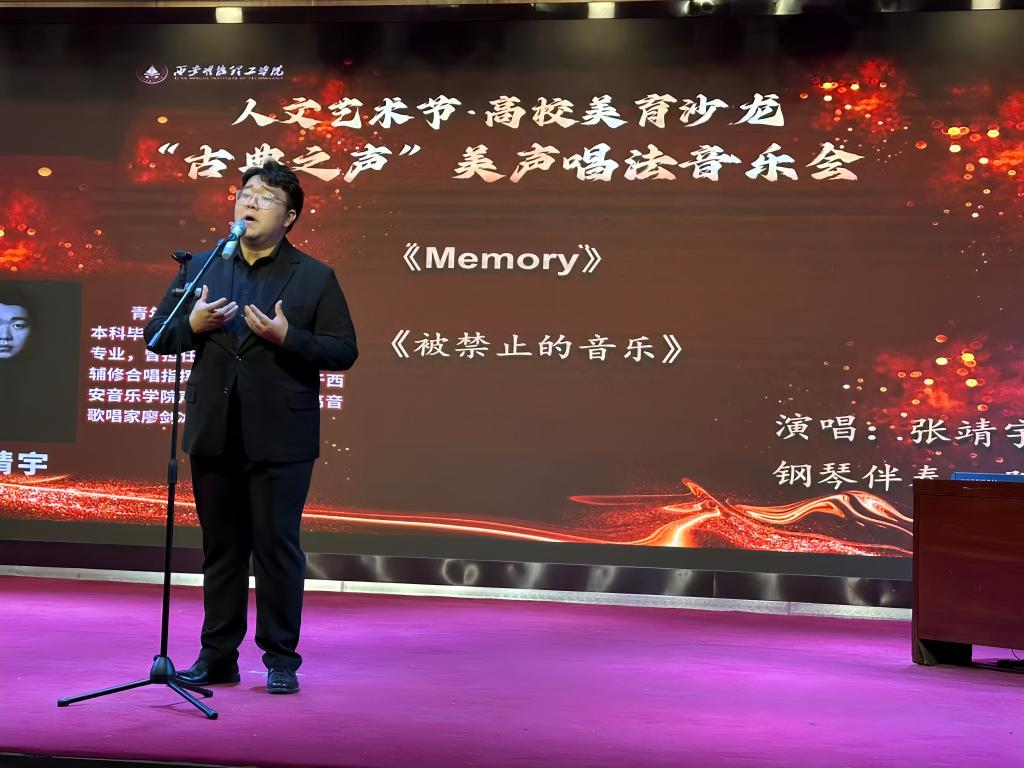 随后,张靖宇老师以浑厚深沉的男中音,完美诠释了音乐剧《猫》中的经典曲目《Memory》和意大利艺术歌曲《被禁止的音乐》,展示了美声唱法跨越语言与文化的魅力。刘盼望老师则以高亢明亮的男高音,精彩呈现了取材中国古典诗词的《锦瑟》、《红绣鞋·欢情》,以及旋律优美动人的《我心爱的意中人》和表达深切思念的《两地曲》,将中国元素与美声技法巧妙融合。