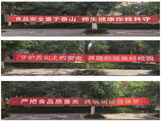 在沣河苑餐厅、明德1999门口及校园主干道,通过悬挂横幅、分发宣传资料等形式,向师生普及食品安全法律法规、食品选购技巧、夏季食物中毒预防等知识,并倡导师生充分认识非正规外卖的潜在风险,切实保护自身健康权益。