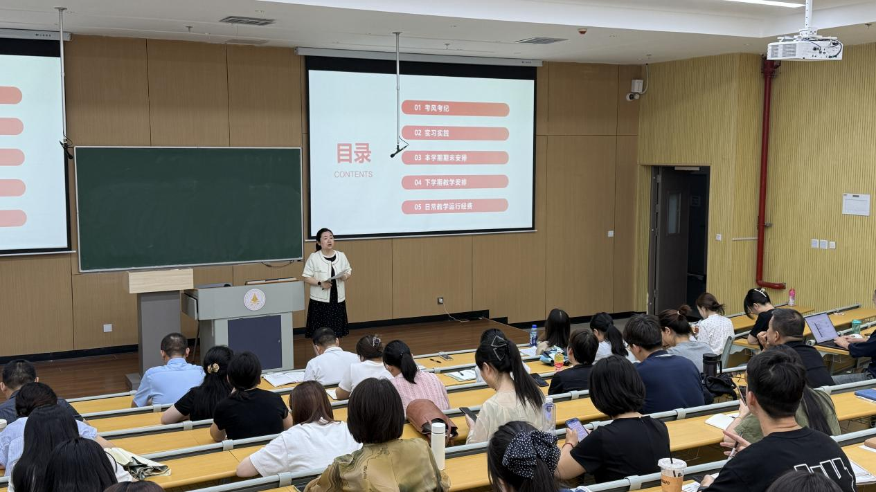 于莉副院长从考风考纪、监考职责、三学期实习实践安排、本学期期末考试安排、下学期教学安排、日常教学运行经费等方面给大家进行了详细的培训及要求,进一步强化了纪律意识,规范了考试要求,明确了教学任务及安排,同时也传达了月度教学质量监控与评价反馈会相关精神,最后强调,全院上下要把各项要求扎实落实到本职工作中,要紧紧围绕学校本科合格评估这一中心任务,助力学院教育教学各项工作平稳有序推进。