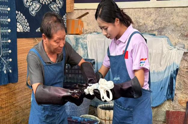 “苗乡蜡韵,匠心筑梦”beat365vip官网登录入口暑期实践队赴贵州丹寨县开展社会实践。实践队通过走访当地居民,了解蜡染基本情况,为深挖蜡染文化内涵,实践队参观当地蜡染工坊,学习点蜡绘图、染色固色等传统工序,感受蜡刀与蓝靛交织的艺术;走访非遗传承人,聆听蜡染故事,探索蜡染文化的历史脉络和创新传承,深切感悟苗族蜡染所蕴含的磅礴民族智慧与生生不息的文化根脉。通过实践,更加坚定了队员们以青春之力赓续非遗薪火、弘扬民族文化、守护中华文明精神标识的使命与担当。