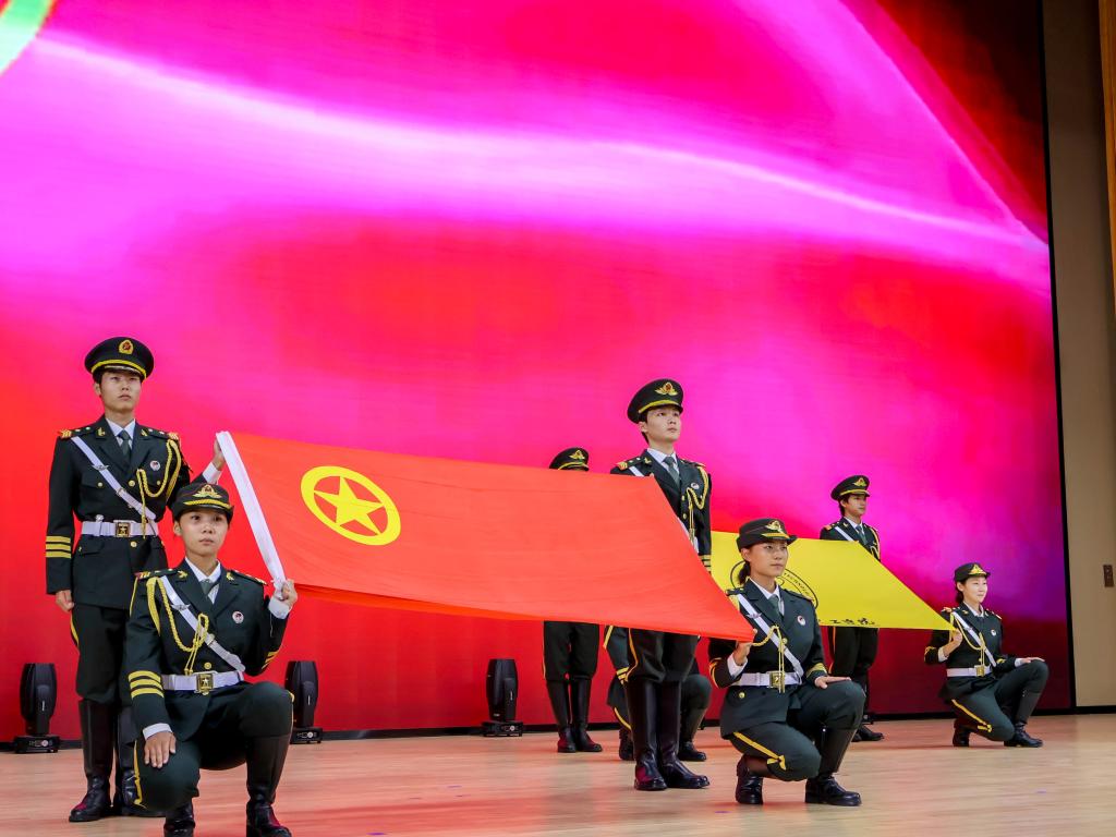 大会在庄严的迎团旗、校旗仪式中拉开帷幕,全体参会人员齐唱团歌与校歌,激昂的旋律展现出明德学子昂扬向上的精神风貌。