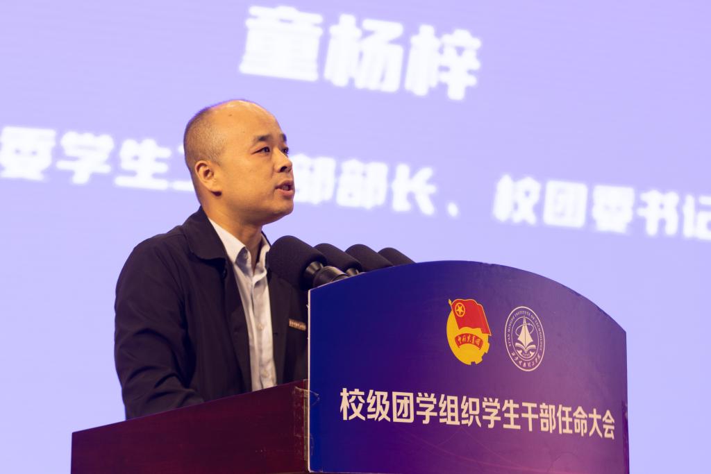 最后,学校党委学生工作部部长、校团委书记童杨梓总结讲话,对新一届学生干部提出期望,希望大家牢记“自我管理、自我服务、自我教育”的宗旨,以青春之力扛起责任,以务实行动推动团学工作创新发展,为学校事业进步与学生成长成才贡献更多力量。