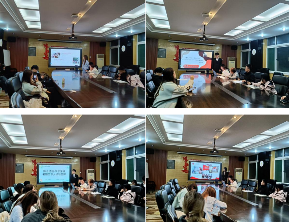 10月20日,明德科技职业学院暑期“三下乡”社会实践活动结项答辩会在明理楼216会议室举行。此次答辩旨在全面总结实践经验、展示实践成果,推动学院实践育人工作高质量发展。学院党总支副书记王飞、团委书记郭庆、王会霞老师参加,会议由吴秋月老师主持。