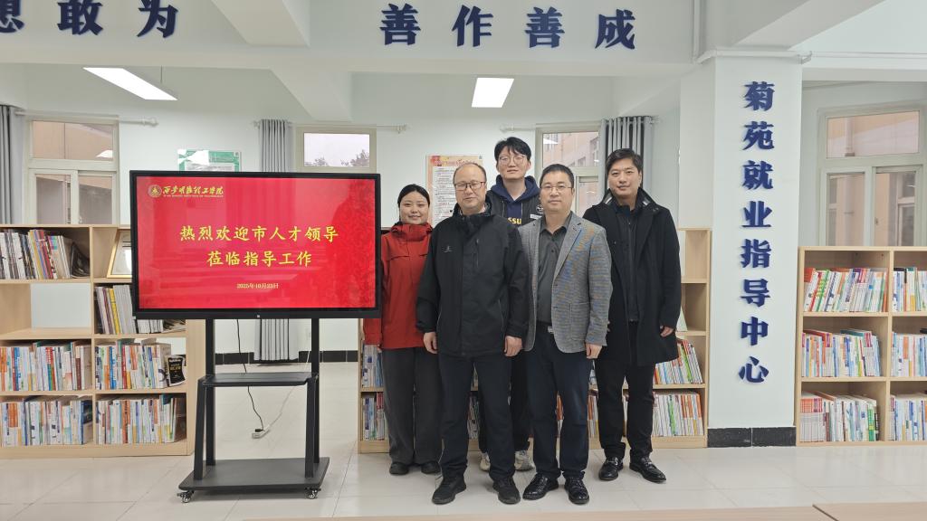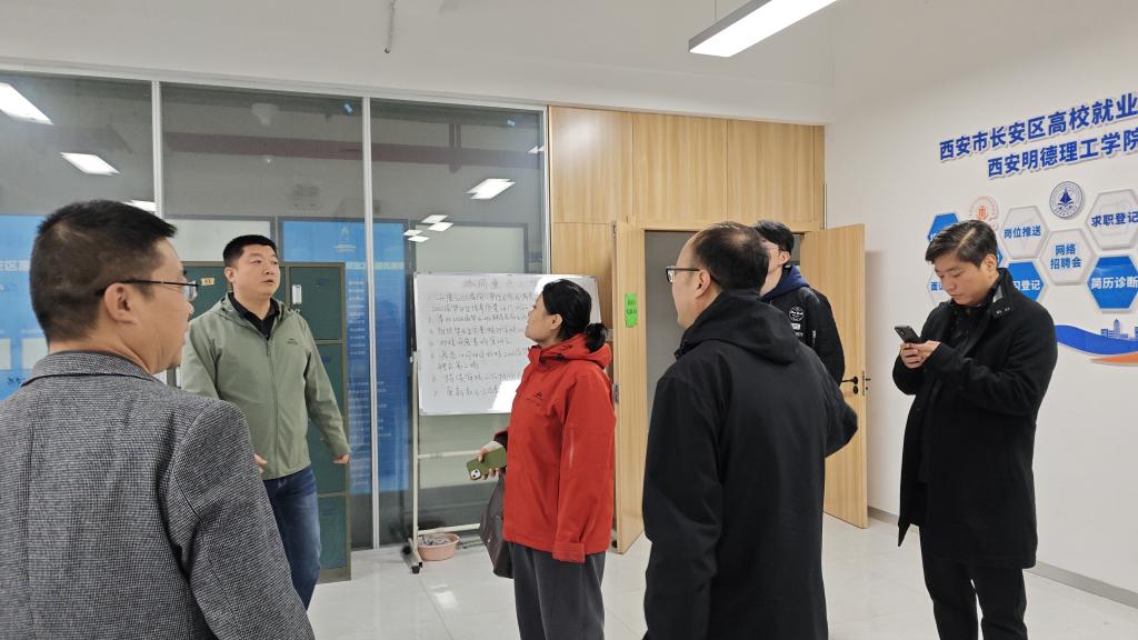 10月23日下午,西安市人才中心毕业生工作部部长赵建利一行来校调研指导长安区高校就业服务驿站,学校招生就业中心副主任侯磊、就业办公室主任王育春陪同调研。