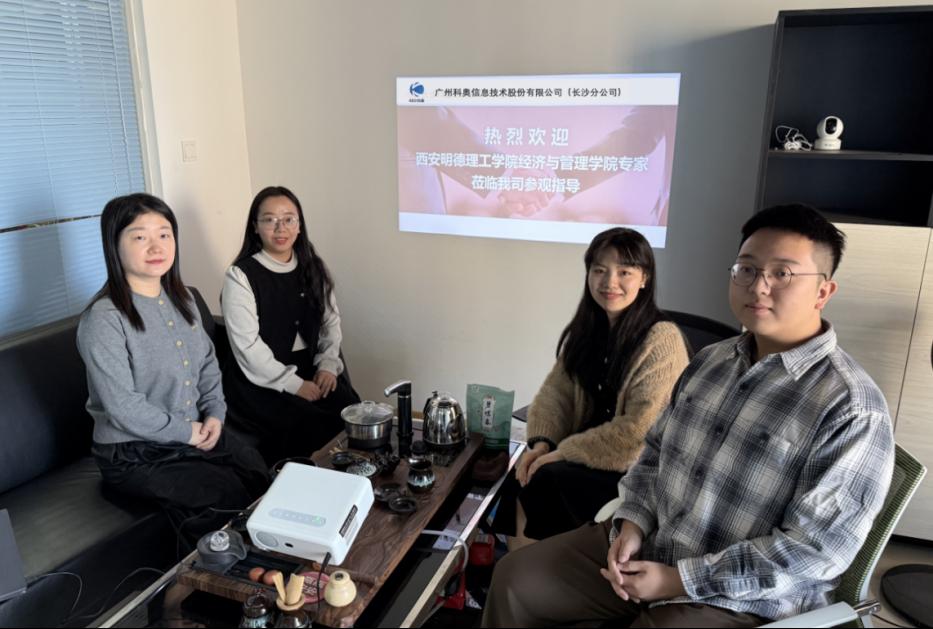 在广州科奥信息技术股份有限公司(长沙分公司),调研团围绕科研服务领域营销模式创新及校企合作方向进行交流,双方就课程案例共建、实践资源共享等议题交换了意见,达成初步合作共识。