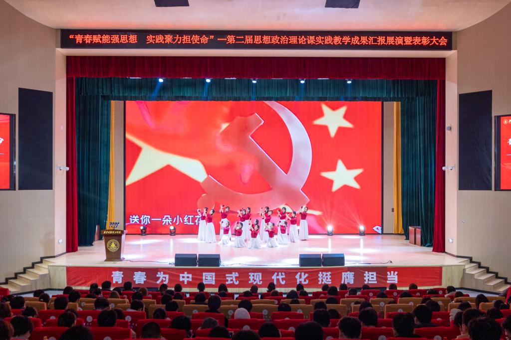 为深入推进思想政治理论课实践教学改革,充分展示思政教育育人成果,2025年11月25日晚,马克思主义学院 “青春赋能强思想,实践聚力担使命” 第二届思想政治理论课实践教学成果展演暨优秀作品表彰大会在四季廊桥报告厅隆重举行。学院党委书记王君涛、副院长惠斌,全体思想政治理论课教师以及获奖学生代表、各年级学生代表共1000余人齐聚一堂,共同见证思政实践育人的丰硕成果,共话新青年的责任与担当。