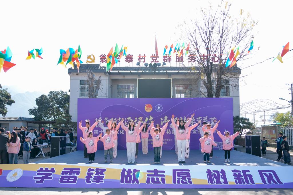 11月29日上午,学校“暖冬聚力迎评估·沣河助学育花蕾”第十七届文化下乡文艺汇演暨“花蕾”奖学金颁奖典礼在“沣河行动”义务家教社会实践基地翁家寨村委会大院隆重举行。翁家寨村委会委员翁长春、西安天爱启智学校执行校长张静、西安沣峪口滦镇养老公寓院长黄兴龙,学校党委学生工作部、校团委、各二级学院相关负责老师,青年志愿者服务团成员,受教儿童及家长代表共计两百余人参加活动,共同见证这场公益助学与文化振兴交融的盛会。