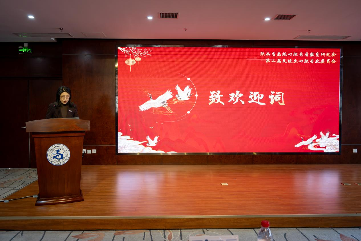 在会议开幕式上,西安外事学院副校长马宏致欢迎词,陕西省高校心理素质教育研究会会长郑林科致辞。