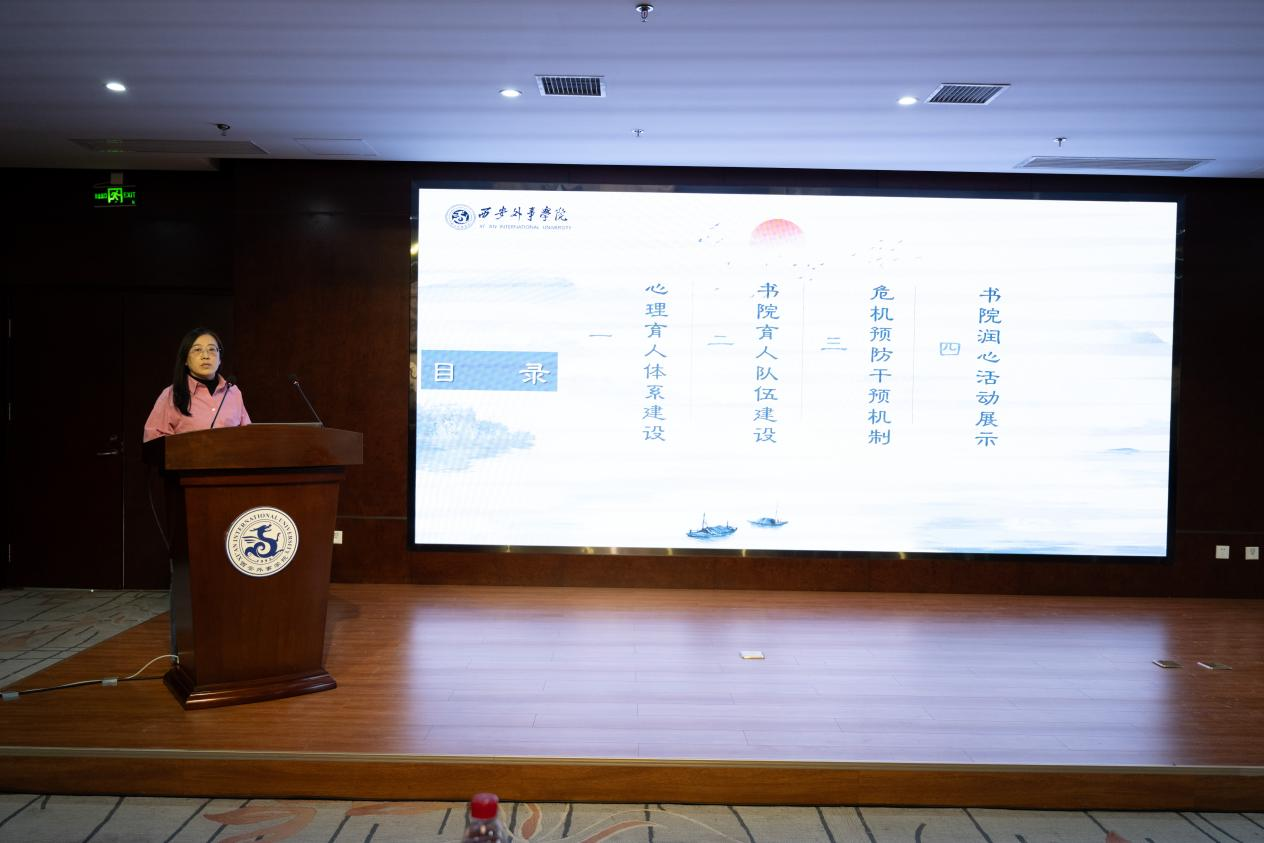 在专题分享环节,西安培华学院辅导员石戎睿星、beat365通识教育学院副院长薛飘、西安外事学院心理中心副主任张程花分别围绕“表达性艺术心理疗愈”“五育并举视域下的心理育人路径”“文化浸润式育心实践”等主题分享案例,展现了各高校在心理育人领域的特色探索。