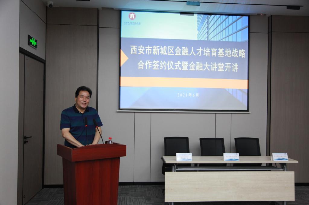 最后,新城区委常委、区委组织部部长赵明欣在仪式上对合作共建表示祝贺,对学校的信任和支持表示衷心的感谢。他强调,金融人才培训基地的建设,将进一步加强政府、高校、企业、人才之间的资源共享,更好实现学术研讨、产业规划、人才储备等方面的交流合作,加大金融创新力度,拓展金融服务空间,实现校企共融、共建、共赢、共生,为西安市“丝路金融中心”建设提供强有力的人才保障和智力支撑。
