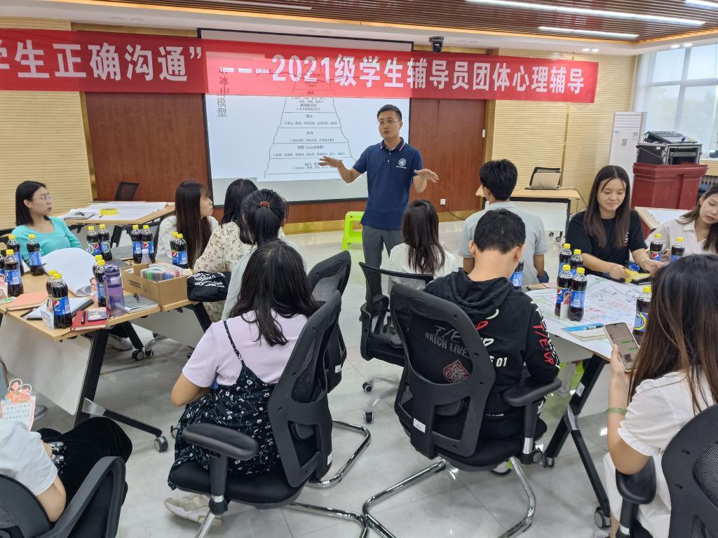 9月10日上午,“与学生正确沟通”--2021级学生辅导员心理团辅活动在明志楼311会议室召开,活动邀请通识教育学院薛飘老师主讲,全体2021级学生辅导员、梯队辅导员参加了团辅活动。