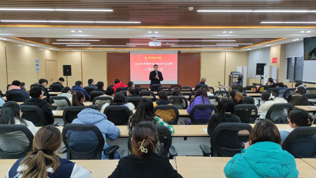 大扫除前学校党委副书记董昊主持召开工作部署会,他要求各学院要以本次大扫除为契机,彻底清除学生公寓的卫生死角和安全隐患,营造安全卫生的公寓环境。