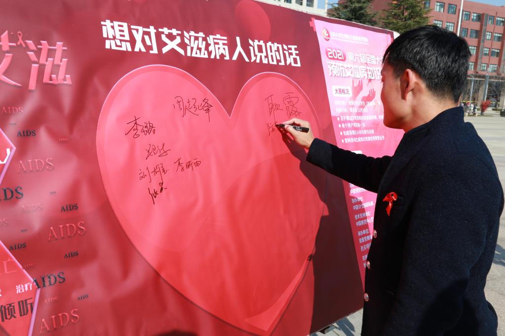 12月1日,是第34个世界艾滋病日,为帮助同学们正确认识艾滋病,消除歧视,提高艾滋病防治知识知晓率,营造全校学生参与艾滋病防治工作的良好氛围,志愿服务集中行动启动仪式结束后,青年志愿者服务团随即举办“有爱无艾为艾代言”2021“生命至上终结艾滋健康平等”为主题的防艾宣传活动。