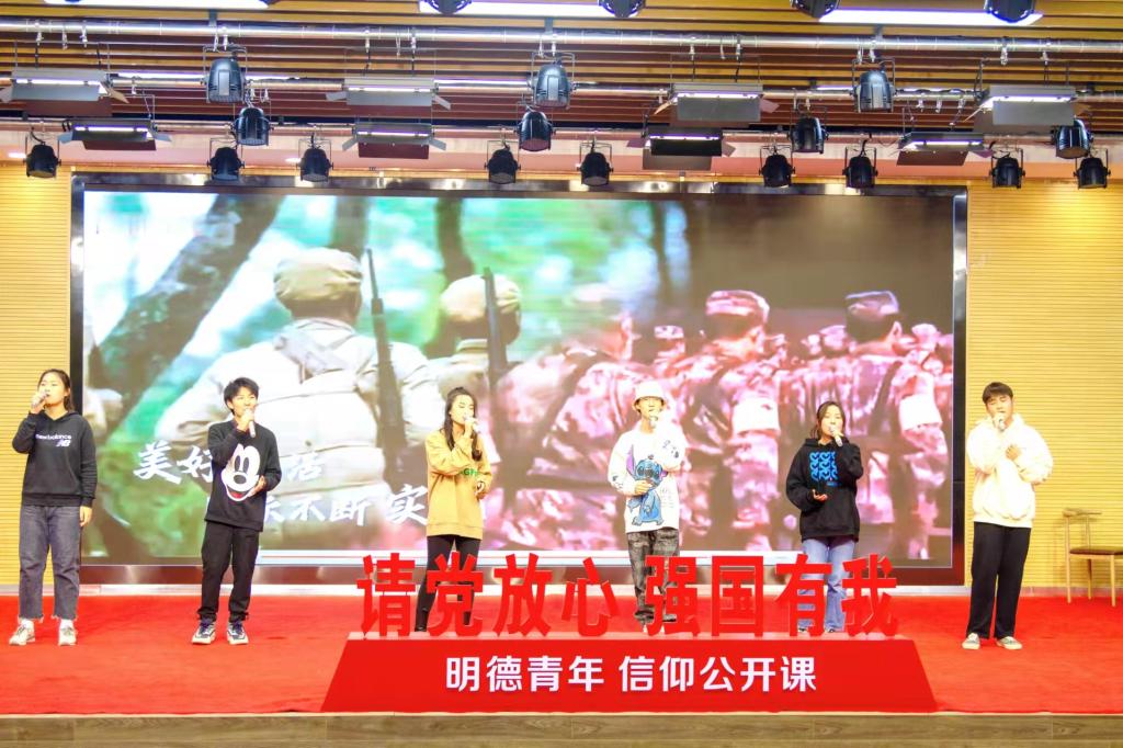 学校大学生艺术团的同学们用嘹亮的歌声演唱歌曲《少年》,拉开公开课的序幕。