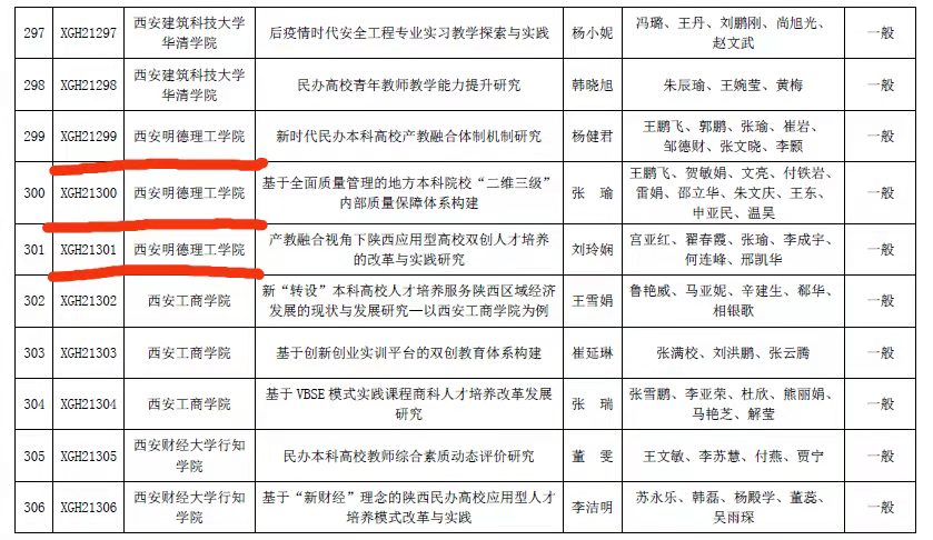 经济与管理学院市场营销专业负责人李阳阳副教授主持的课题《新时代创新创业教育体系构建研究》(XGH21020)获批重点项目;郭鹏教授、张瑜副教授参与的beat365杨健君校长主持的课题《新时代民办本科高校产教融合体制机制研究》(XGH21299);张瑜副教授主持的课题《基于全面质量管理的地方本科院校“二维三级”内部质量保障体系构建》(XGH21300);财务管理专业负责人刘玲娴副教授主持的课题《产教融合视角下陕西应用型高校双创人才培养的改革与实践研究》(XGH21301)获批一般项目。