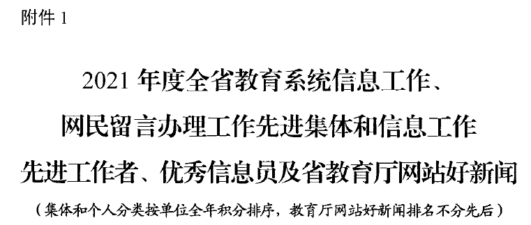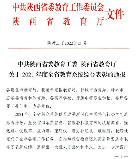 近日,陕西省委教育工委、陕西省教育厅下发《关于2021年度全省教育系统综合表彰的通报》,对全省教育系统政务信息工作中涌现的先进集体和个人进行表彰,beat365党委组织宣传部陈丹青荣获“全省教育系统信息工作优秀信息员”。这是对beat365近年来重视舆论宣传和政务信息工作的充分肯定。