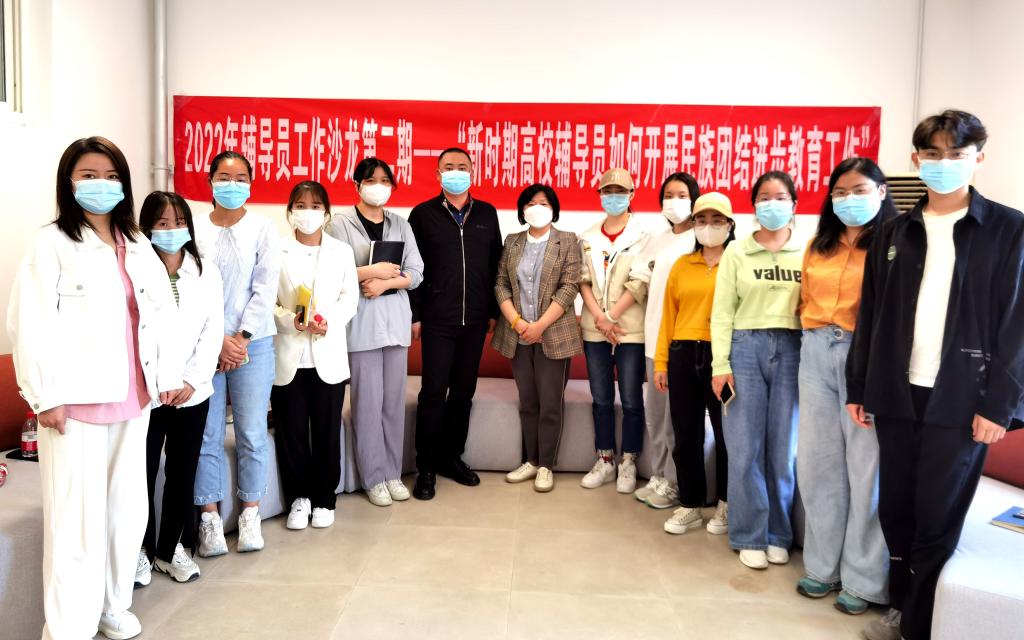 为进一步促进各民族学生交往交流交融,深化新时代民族团结进步教育工作,4月25日,辅导员工作研讨沙龙第二期“新时期高校辅导员如何开展民族团结进步教育工作”学习交流会在明理楼414举行。新疆内派驻beat365指导教师季俊红、少数民族学生辅导员代表、党委学生工作部相关人员参加交流。会议由党委学生工作部王飞主持。