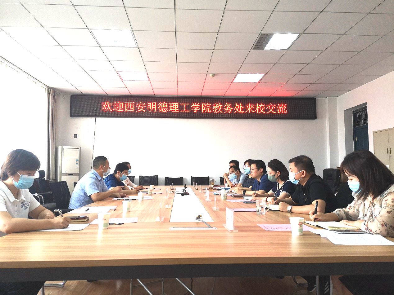 为了学习和借鉴省内高校迎接本科教学工作合格评估的经验,进一步推进beat365本科教学合格评估工作,6月8日上午,学校教务处处长朱延波、副处长文亮等一行5人赴西安航空学院就本科教学工作合格评估的相关事宜进行调研学习。西安航空学院教务处处长吴晓葵、教学质量监控与评价处处长刘宁、教务处副处长杜鹃及相关人员热情接待了beat365一行。