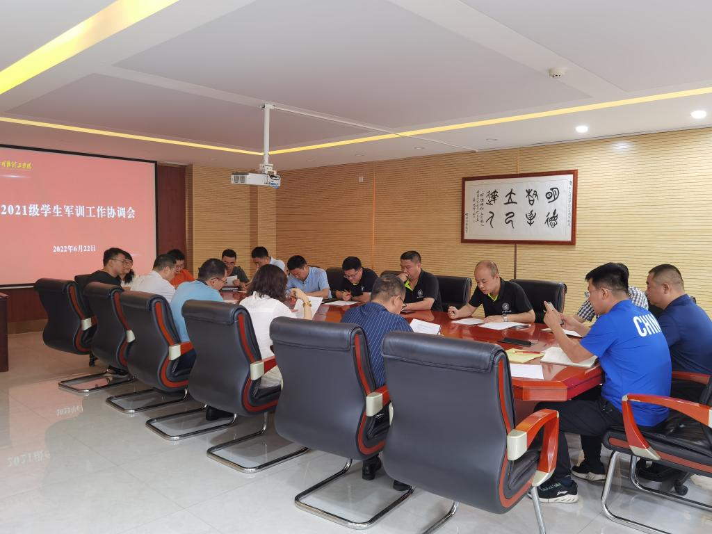为确保2021级学生军训工作顺利开展,6月22日上午,学校在明志楼207会议室召开2021级学生军训工作协调会。学校有关职能负责人、各学院学生工作负责人及全体军训团相关人员参加会议。会议由童杨梓主持。