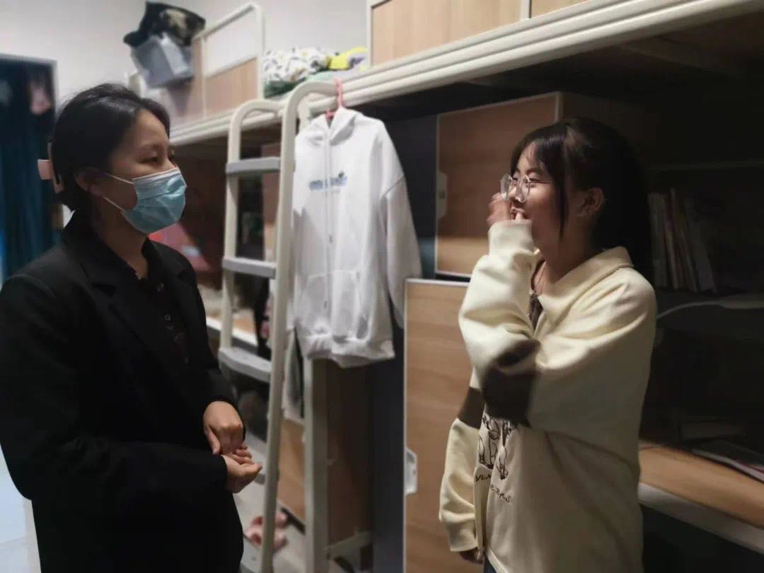 走访过程中,那老师亲切地与同学们进行交谈,询问了同学们对于新环境的适应状况、饮食、学习生活等情况,同时鼓励同学们新学期以全新的精神面貌积极投入到新的学习和生活中,积极地营造健康安全和谐的宿舍氛围。最后老师们叮嘱同学们遇到任何困难、疑惑要及时与学院辅导员和派驻老师进行沟通。同学们对此次走访表示既感动,又满意,纷纷表示要更加努力学习,回报学校、家长和社会。