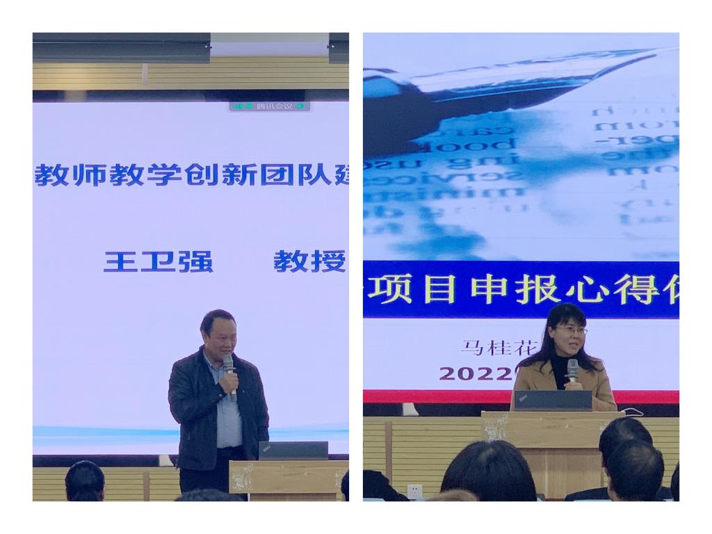 会议宣读了《语言文化传播学院关于成立青年骨干教师教学创新团队和科研创新团队的决定》,团队带头人王卫强教授、马桂花教授分别就团队建设思路及设想进行交流发言。