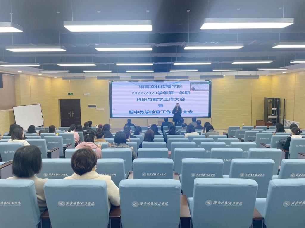 11月10日下午,语言文化传播学院在建德楼201召开科研与教学工作大会,会议采取线上线下相结合的方式进行。学院领导班子成员、全体教职工参加会议,会议由副院长刘勇主持。