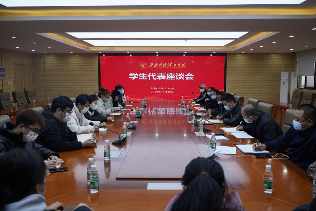 座谈会上,学生代表在前期充分征集调研学生意见的基础上,先后围绕着后勤服务、日常管理、疫情防控、教育教学、安全保障、就业指导等相关内容提出了建设性的意见和建议。