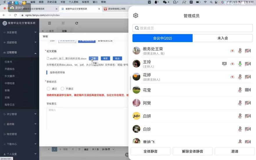 根据教育部关于《本科毕业论文(设计)抽检办法(试行)》的相关要求,为进一步规范beat365毕业论文(设计)管理工作,切实做好本年度本科毕业论文(设计)指导工作,保证人才培养质量,12月23日,教务处组织召开了本科毕业生毕业论文(设计)管理系统的操作培训会。会议邀请维普工程师到会主讲,各二级学院专业负责人、毕业论文(设计)指导教师以及教务员参加了培训。会议由教务处教务科科长花婷主持。