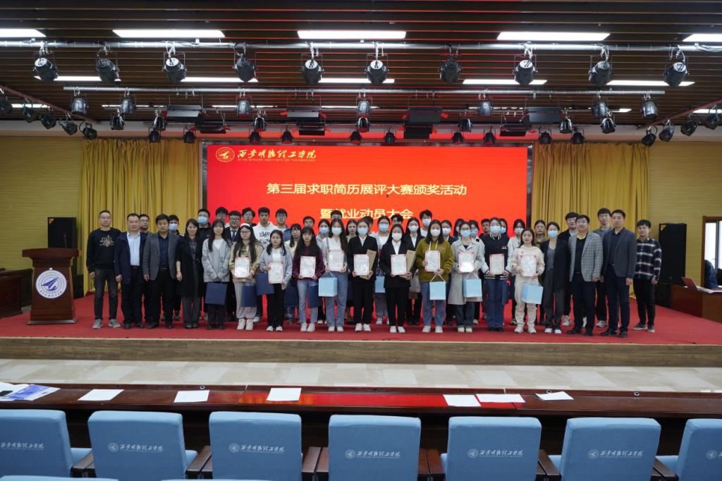 会上,招生就业中心王东辉副主任宣读本次大赛获奖学生名单,并对获奖学生表示祝贺。就业办公室老师、各二级学院党委副书记、创新创业学院教师及毕业班辅导员为获奖学生颁奖。获奖学生代表陈鹏、田婷婷两位同学分别围绕如何制作一份精美、简洁、层次分明、逻辑清晰、紧密结合求职岗位、展现个人优势及岗位胜任力的简历做了精彩的分享。他们感谢学校精心组织本次大赛,给即将步入职场的同学们提供了互相学习的平台,让大家彻底对自己进行了一次SWOT分析,帮助同学赢在求职的起跑线上,同时感谢比赛过程中给予他们悉心指导的老师和帮助的同学。