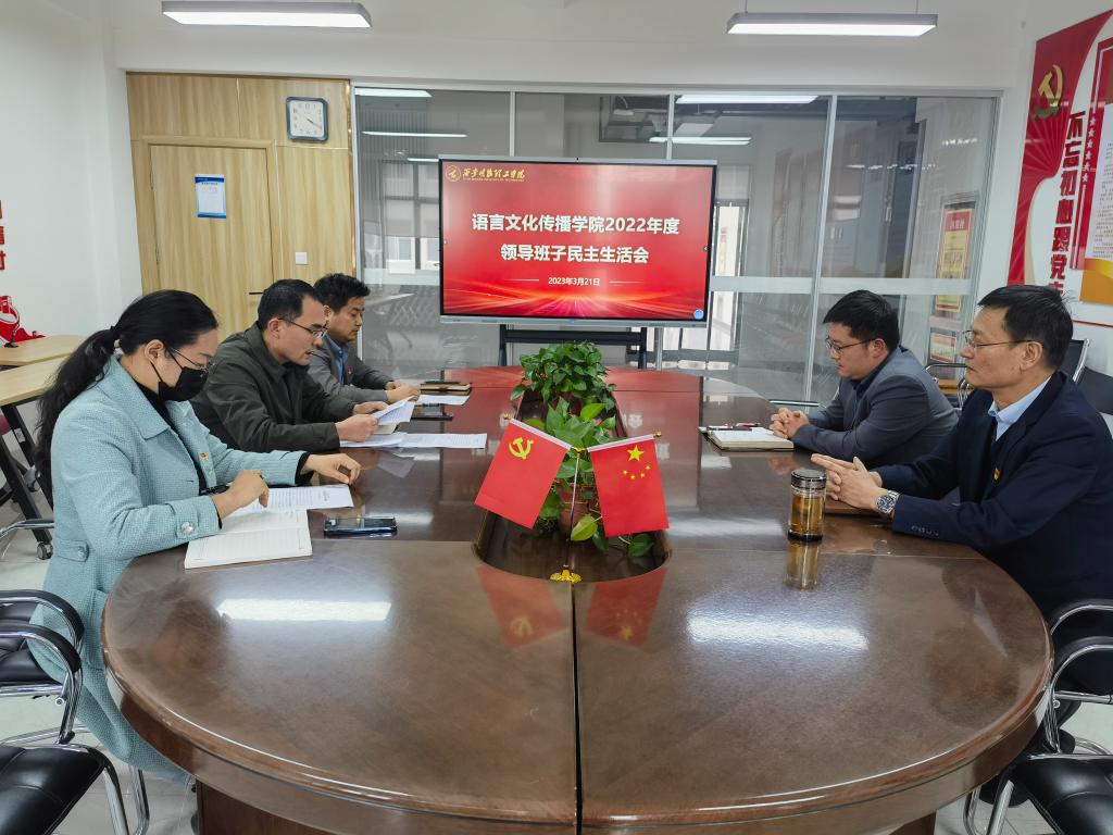 3月21日,语言文化传播学院在明志楼406会议室召开2022年度领导班子民主生活会。校党委组织宣传部部长高超、学院领导班子、党支部书记参加会议。会议由学院党委书记赵旭东主持。