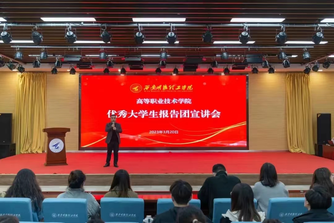 为推动我院学风建设,宣传身边先进典型,充分发挥榜样的引领和示范作用,以朋辈榜样效应激发学生内在学习动力,3月21日晚上,优秀大学生报告团巡讲-高职专场会议在建德楼203报告厅举行,马克思主义学院与通识教育学院党委书记王君涛、高等职业技术学院党总支书记王庭良、办公室主任陆鹤、全体大一辅导员老师及300多名学生代表参会。