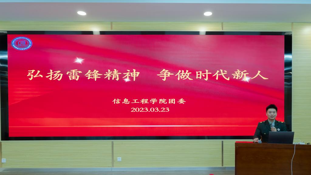 为大力培育和践行社会主义核心价值观,引导我院青年学习和弘扬雷锋精神,厚植爱党爱国爱社会主义情怀。3月23日,信息工程学院团委举办“弘扬雷锋精神,争做时代新人”系列活动专题讲座,邀请雷锋旅退役士兵、信息工程学院20级学生宋泽春主讲。