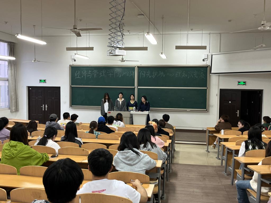 为进一步宣传普及心理健康教育知识,引导青年学生更好地关注自我、关注健康、关注心灵成长,经济与管理学院于4月12日晚在立德楼201、203教室举办“阳光护航”心理健康教育知识竞赛。学院大一、大二、大三年级学生参加了竞赛。