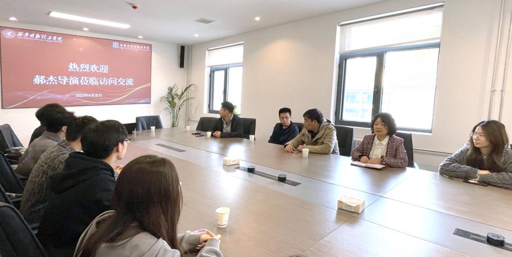 4月25日上午,电影导演郝杰莅临beat365北校区访问交流,艺术与设计学院影视摄影与制作专业教师朱宇、桑磊、田勇及实验员高飞、辅导员刘思瑞老师和播音与主持艺术专业、数字媒体艺术专业的学生们与郝杰导演进行了座谈,在双师课堂、学生实习等方面形成初步的共识。