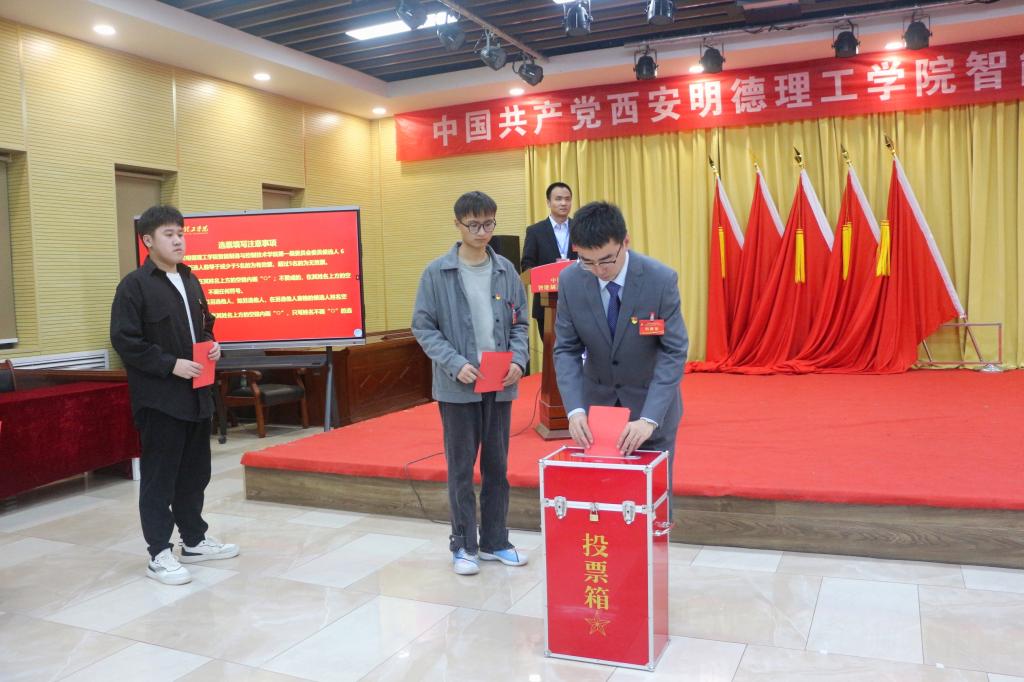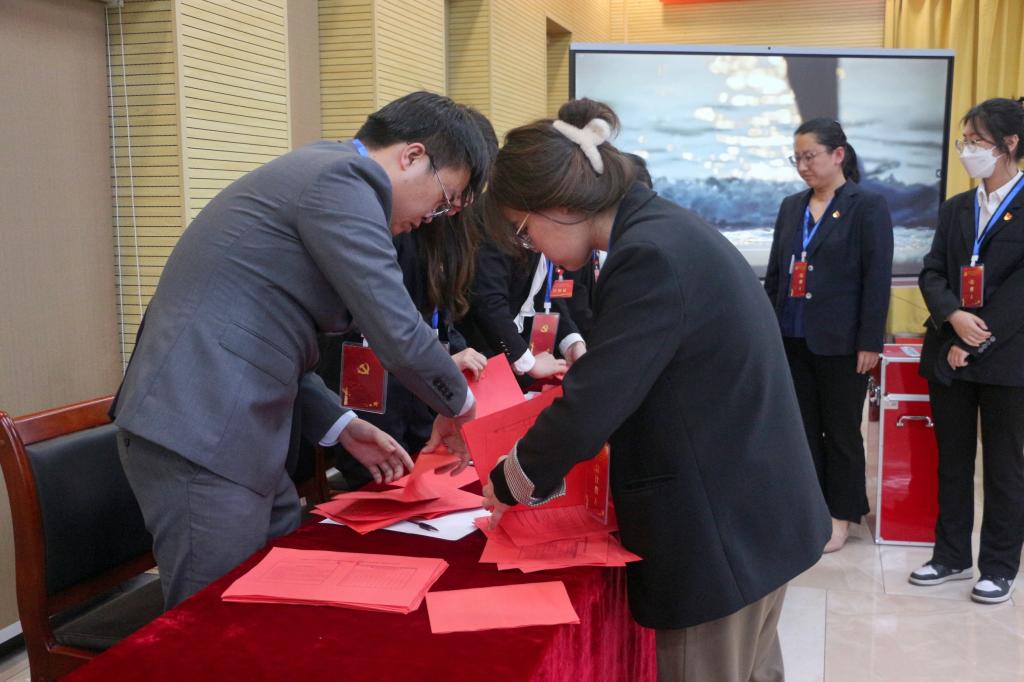 总监票人赵盼同志主持选举工作。大会采取无记名投票的方式选举产生了学院党委第一届委员会委员。陈雪彬、曾凯、赵婷、李郁、王泽五位同志当选为新一届委员会委员。