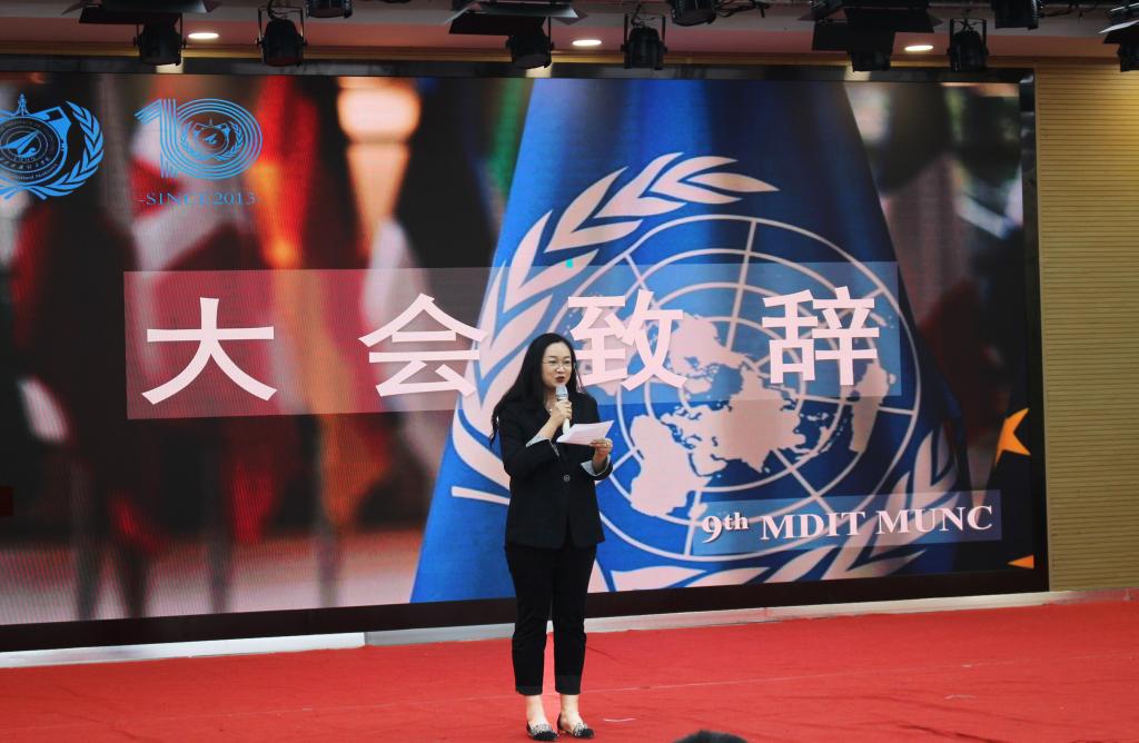 刘勇在致辞中指出beat365vip官网登录入口作为陕西最早举办模拟联合国活动的高校之一,长期致力于培养学生的国际视野和跨文化沟通能力,并取得了优异的成绩。她强调2023年是明德模联团队创立十周年,这为第九届明德模联大会的举办赋予了特殊意义。