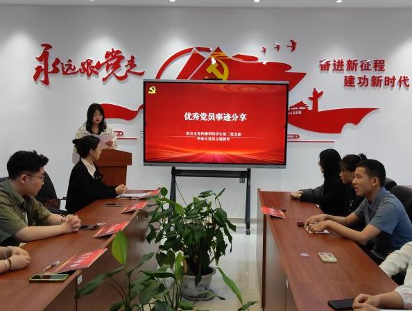 学生第二党支部房佳佳、贺瑞、王紫豪等5名毕业生党员就各自的考学备战、求职经历、就业选择等方面进行了经验分享。面对学弟学妹提出的升学、就业、人生规划等方面的问题逐一予以解答。为低年级学生传经送宝、解疑答惑,发挥支部毕业生党员的“传帮带”作用和模范带头作用。