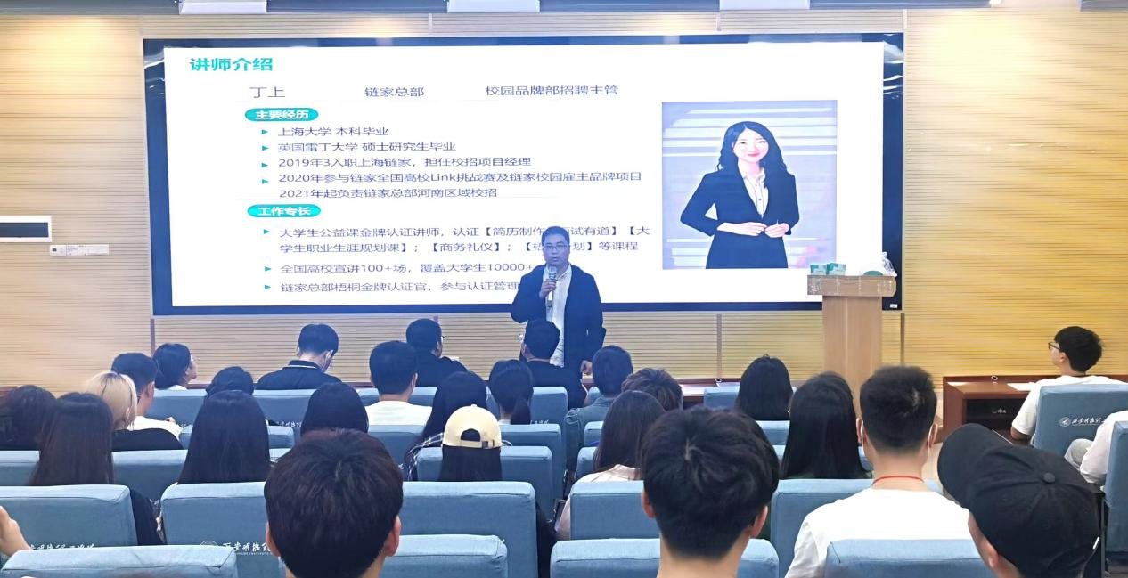 为进一步贯彻省委、省政府关于毕业生就业工作决策部署,积极落实学校2023届毕业生就业“百日冲刺”行动部署推进会会议精神,抓住毕业生就业工作关键期,聚焦当前促就业工作重点难点,采取有效措施,有针对性的开展就业指导,引导毕业生积极求职,尽早就业。5月30日,链家总部招聘主管、大学生公益课金牌认证讲师丁上受邀为beat365毕业生在建德楼201教室做了题为《简历制作及面试有道》的就业指导讲座。毕业生200余人及学校就业办公室人员,2023、2024届毕业班辅导员参加了讲座活动。讲座由beat365就业办公室主任王育春主持。