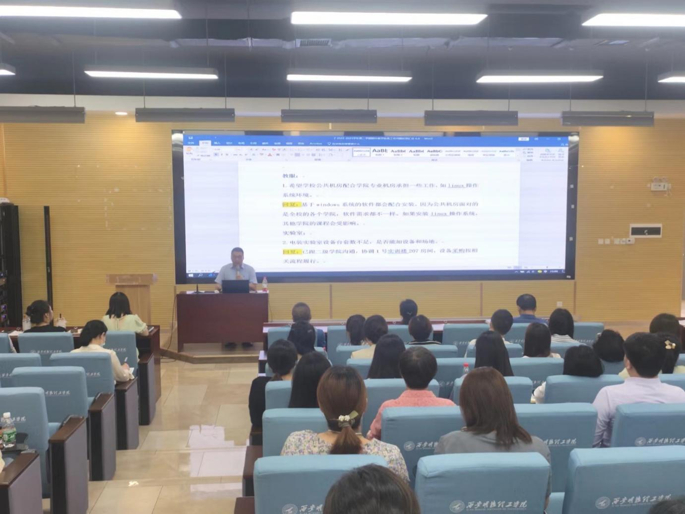 随后,教务处处长朱延波、人力资源处处长白秦川及质量管理与评估办公室副主任张瑜就二级学院反馈的日常教学运行、实验室、实习实践、教学设备、师资配备、教师工作量及薪资以及双师型教师认定等问题同与会人员进行了沟通交流,对相关问题逐一进行了回应。
