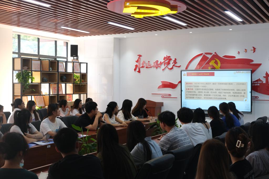 学生第七党支部书记周佳琪以《重温党章发展历程汲取砥砺奋进之力》为题讲授专题党课。她讲到,新时代青年是时代见证者、建设者和实践者,努力做到志存高远,严于律己,努力提高自身专业素养和理论实践,将自身成就与祖国建设融为一体,持之以恒,不断奋斗,为实现中华民族的伟大复兴和全面建设社会主义现代化国家贡献青春力量。