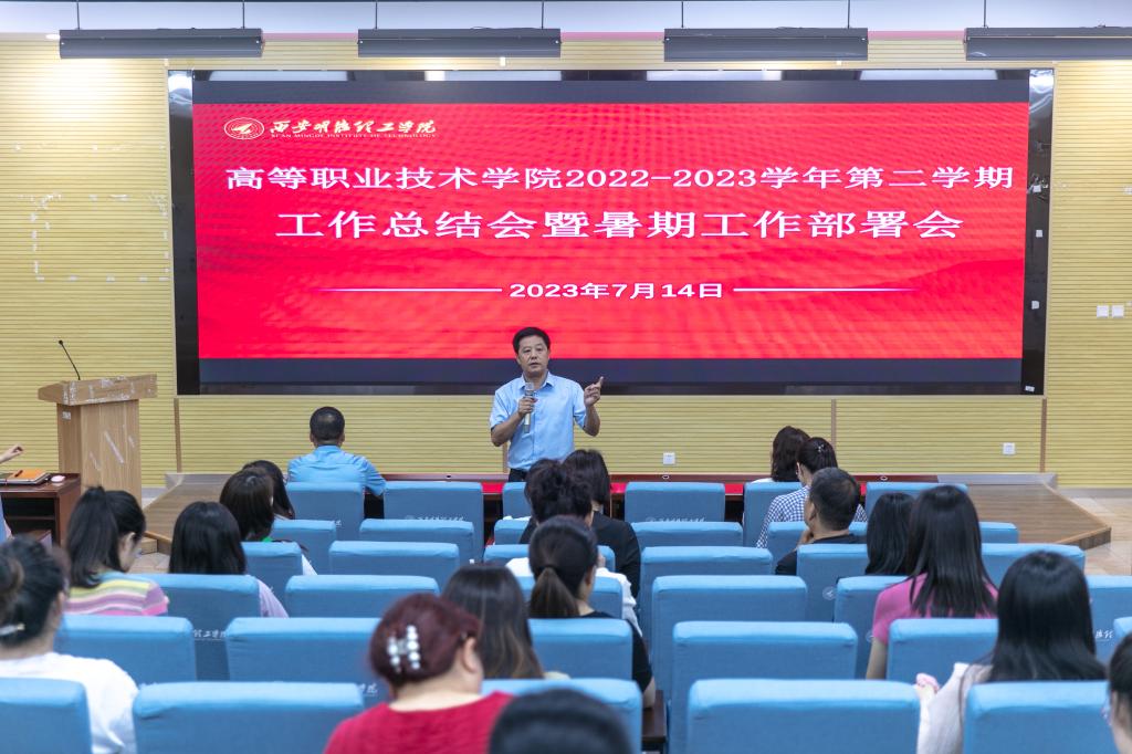 2023年7月14日,高等职业技术学院在建德楼202报告厅召开了2022-2023学年第二学期工作总结暨暑假工作部署会,大会由高等职业技术学院党总支书记、副院长王庭良主持,高等职业技术学院全体教职工参加了本次大会。
