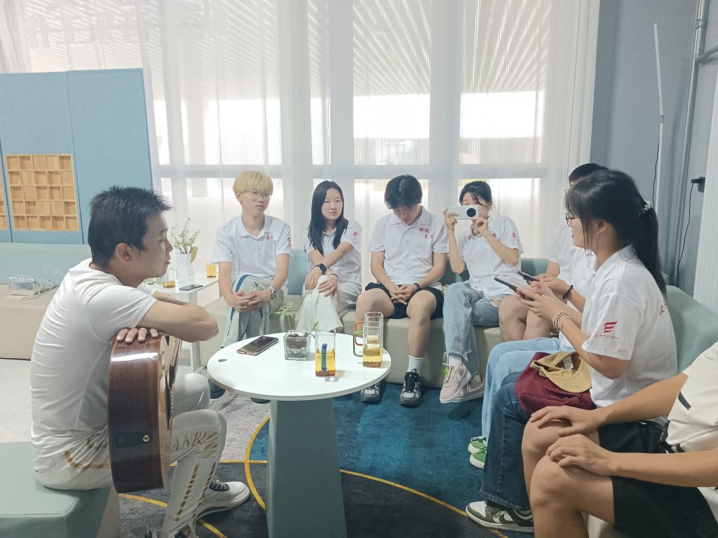 7月18日,实践团队拜访了独立音乐唱作人、陕北跨界音乐旗帜人物、延安市音乐家协会副主席、延安音乐舞蹈家协会主席、延安流行音乐学会会长、延安文艺工作者协会副主席、延安十大杰出青年冯晓荣老师,共同探讨和交流了陕北民歌的创新发展问题。团队成员提出如何让青年群体更好地接受和积极主动传承发扬陕北民歌等问题。冯晓荣老师指出,首先要抛弃传统的观念,对陕北民歌要有比较准确的定位。他讲到,陕北民歌只有与现代音乐元素、表达内容相结合才能更好地传承和发扬下去。最后,冯晓荣老师为团队成员们赠送了典藏版个人作品集。