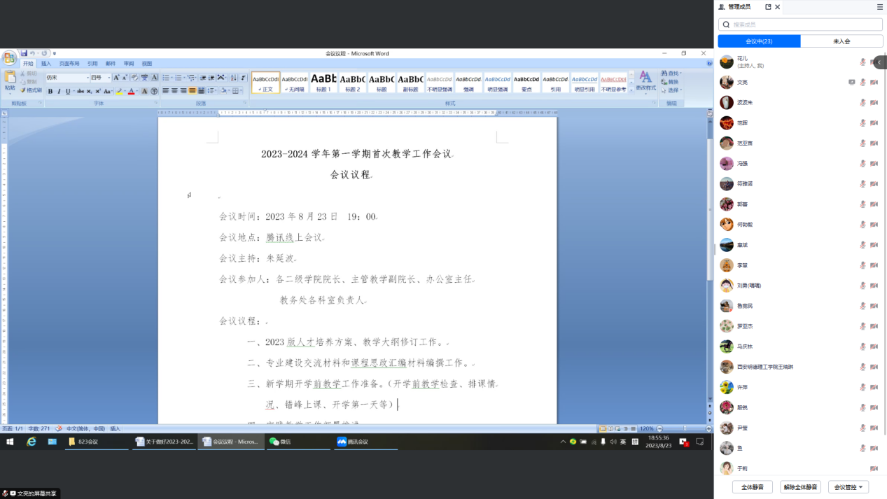 新学期伊始,为及时准确地掌握beat365各学院教学工作准备情况,保证新学期教学工作有序进行。8月23日晚,学校通过线上会议的形式,召开了2023-2024学年第一学期第一次教学工作会议。各二级学院院长、教学副院长、办公室主任和教务处相关人员参加了会议。会议由教务处处长朱延波主持。
