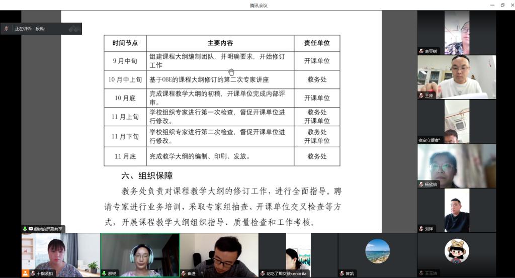 随后,殷院长对我院教育教学工作做出具体指导。针对教师课时以及开课前的准备工作做出了具体要求,围绕三学期实习实训、以及新学期教学检查工作进行了细致的部署,并就可能出现的突发事件进行了应急预案。随后从立德树人、OBE教学理念、课程创新等多个角度对课程大纲修订工作进行系统阐述。