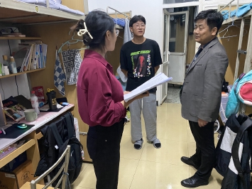 全体学生工作干部深入学生宿舍逐间进行检查,排查宿舍是否存在违规用电、违禁物品、饲养宠物、私拉电线等安全隐患,对检查中发现的安全隐患逐一进行警示,要求现场整改,引导学生养成良好的生活习惯。