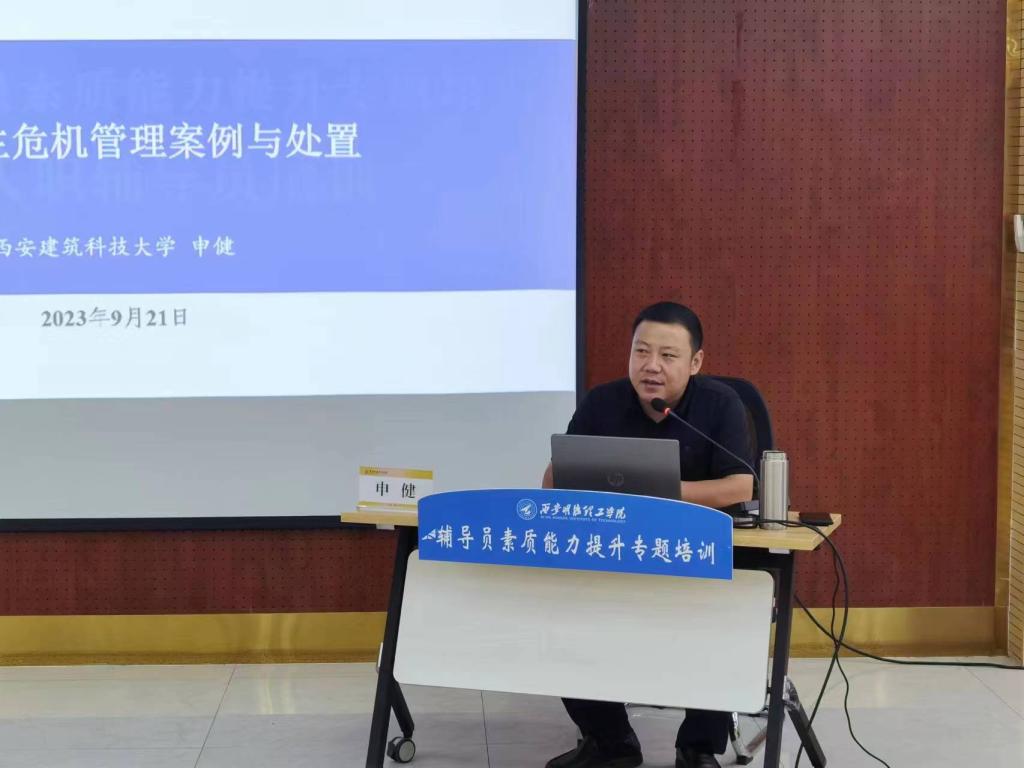 为了更好地提升学校辅导员队伍危机管理专项工作应具备的能力和理论知识储备,能够积极妥善处理好学生危机事件,维护校园安全和稳定。9月21日下午,学校邀请西安建筑科技大学学生工作部部长申健做了《高校学生危机管理案例与处置》专题讲座,全体辅导员参加此次培训。