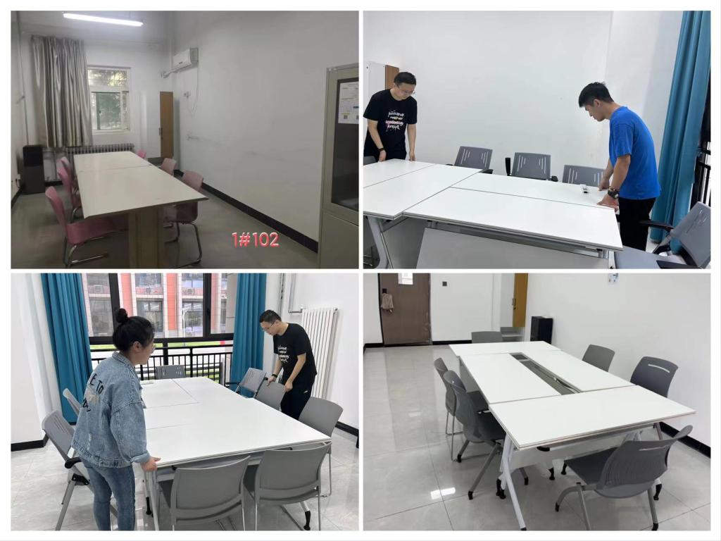 9月20日、21日两天内,在beat365后勤管理处、资产管理处的大力协助下,教学技术服务中心集体成员对全校54间教师休息室进行了重新布置,新增添教师衣柜23个、教师座椅113张、教师办公桌9张、每间教师休息室张贴校园无线网(MDIT-Office)使用说明,并且对教师休息室桌椅进行了调整,确保衣柜、桌椅样式、颜色保持统一美观。
