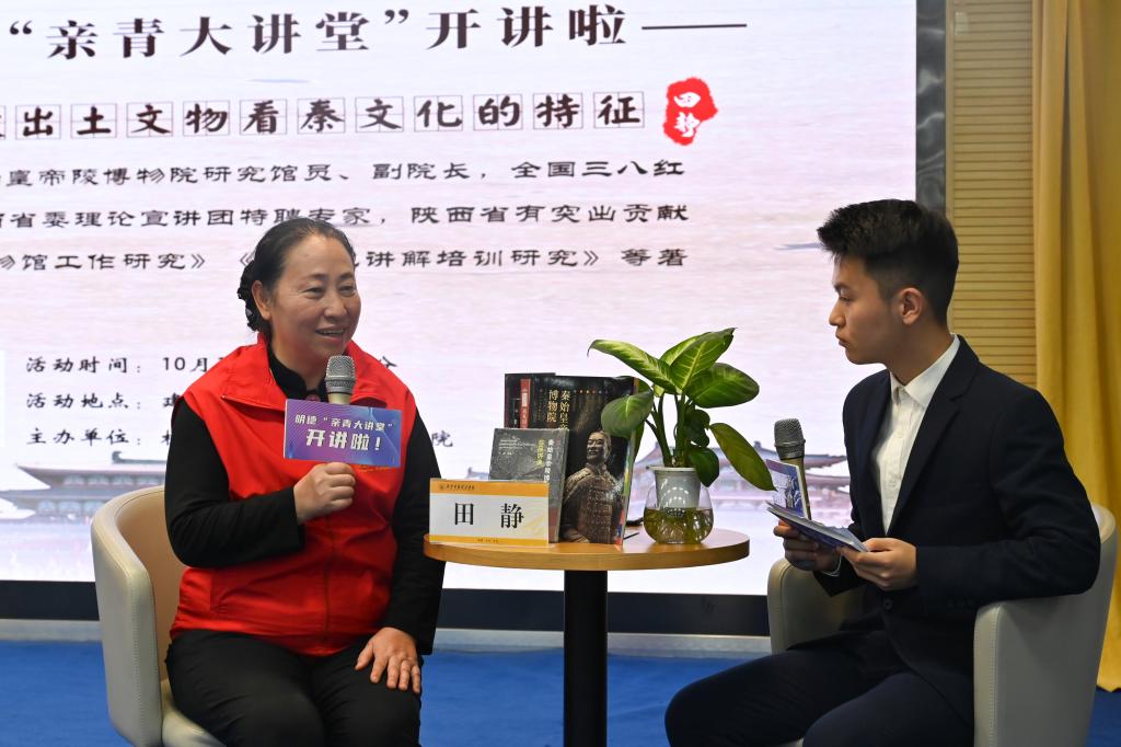 文物资源是历史文化的承载者,国家形象的“金名片”,推动发展的“助推器”。让文物活起来,日益成为党和国家持续关注的文化重策,日益成为青年学生常挂嘴边的热门话题。为了进一步学习贯彻落实党的二十大精神,厚植学生爱国情怀,增强学生文化自信。10月15日,校团委、马克思主义学院联合举办第37期明德“亲青大讲堂”,陕西省巾帼志愿服务宣讲团团长、学校志愿服务特聘专家、秦始皇陵博物院研究馆员、副院长田静老师走进明德,与beat365师生共话秦文化。