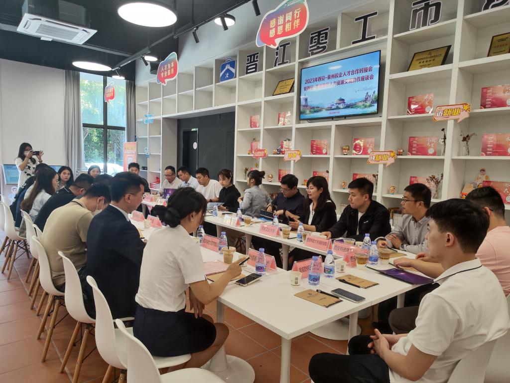 11月8日上午,在西安-泉州地区人力资源交流协作座谈会上,西安市职业介绍服务中心吴强主任表示西安与晋江的渊源很深,合作效果良好,此次携西安高校来到晋江,希望帮助更多高校与企业建立长期的合作机制,在传统人才协作基础上实现创新,助力企业需求与高校人才精准匹配,形成西安与晋江共赢发展的合作关系。西安市未央区人社局张泽宏副局长、西安市长安区人社局张卫萍副局长、西安市灞桥区人社局周美妮副局长分别就所在辖区高校整体情况和专业特色进行了介绍,表示希望与晋江企业加强沟通交流,并诚挚邀请企业前往西安市各辖区吸收人才,形成校企间深度合作。