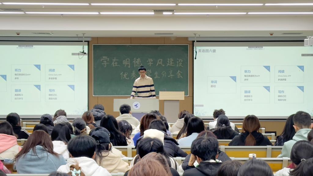 分享会前,张朋以共建优良学风,凝聚青春力量为主题,强调了优良学风建设的重要性,号召广大学生以优秀学生为榜样,积极投身于创建优良学风的活动中,珍惜大学学习时间,持之以恒追求进步,以青春之我激扬梦想,用奋进姿态砥砺前行。